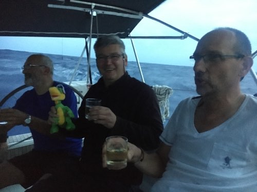 Grundsätzlich sind wir ein „trockenes“ Boot, es gibt auf unserer Yacht weder Bier noch Wein oder hochprozentigen Alkohol. Nur zum betäuben von Fischen oder als Opfer an Erasmus für mehr Wind, wird Hochprozentiges vergossen. Heute haben wir jedoch als Ausnahme zur Geburtstagsfeier zwei Flaschen Sekt geöffnet.