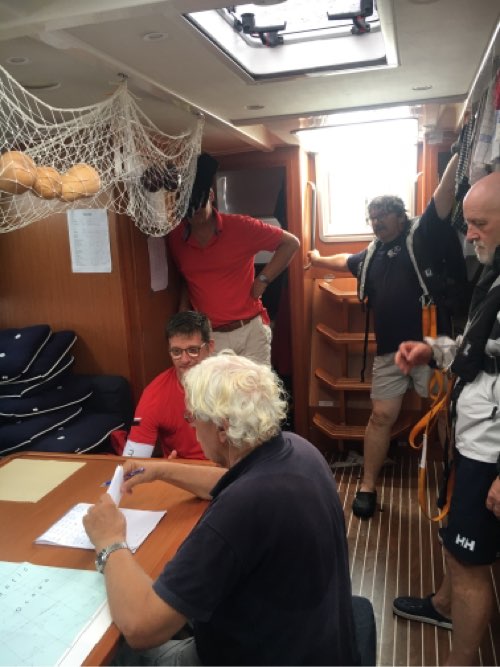Wieder getrocknet gab‘s die übliche tägliche Skipper Besprechung, heute zusätzlich mit einer Schulung zu den Passatwinden und deren Entstehung sowie zu der allgemeinen Wetterlagen auf dem Erdball.