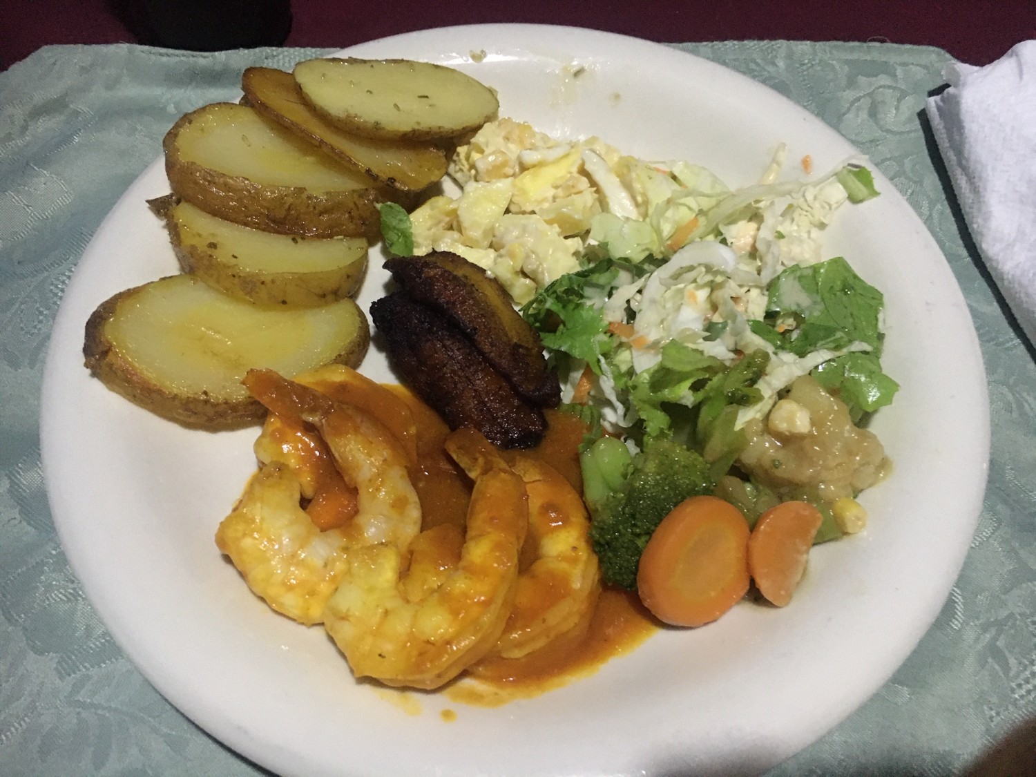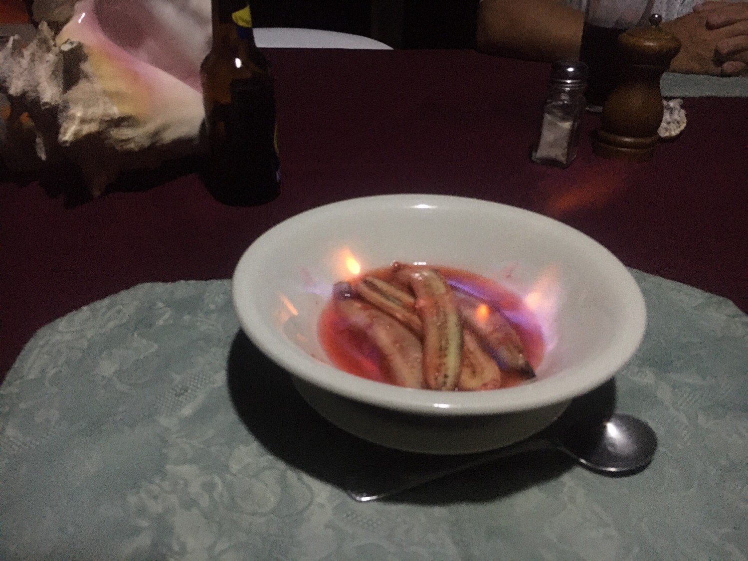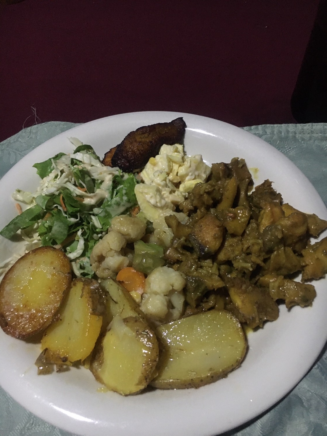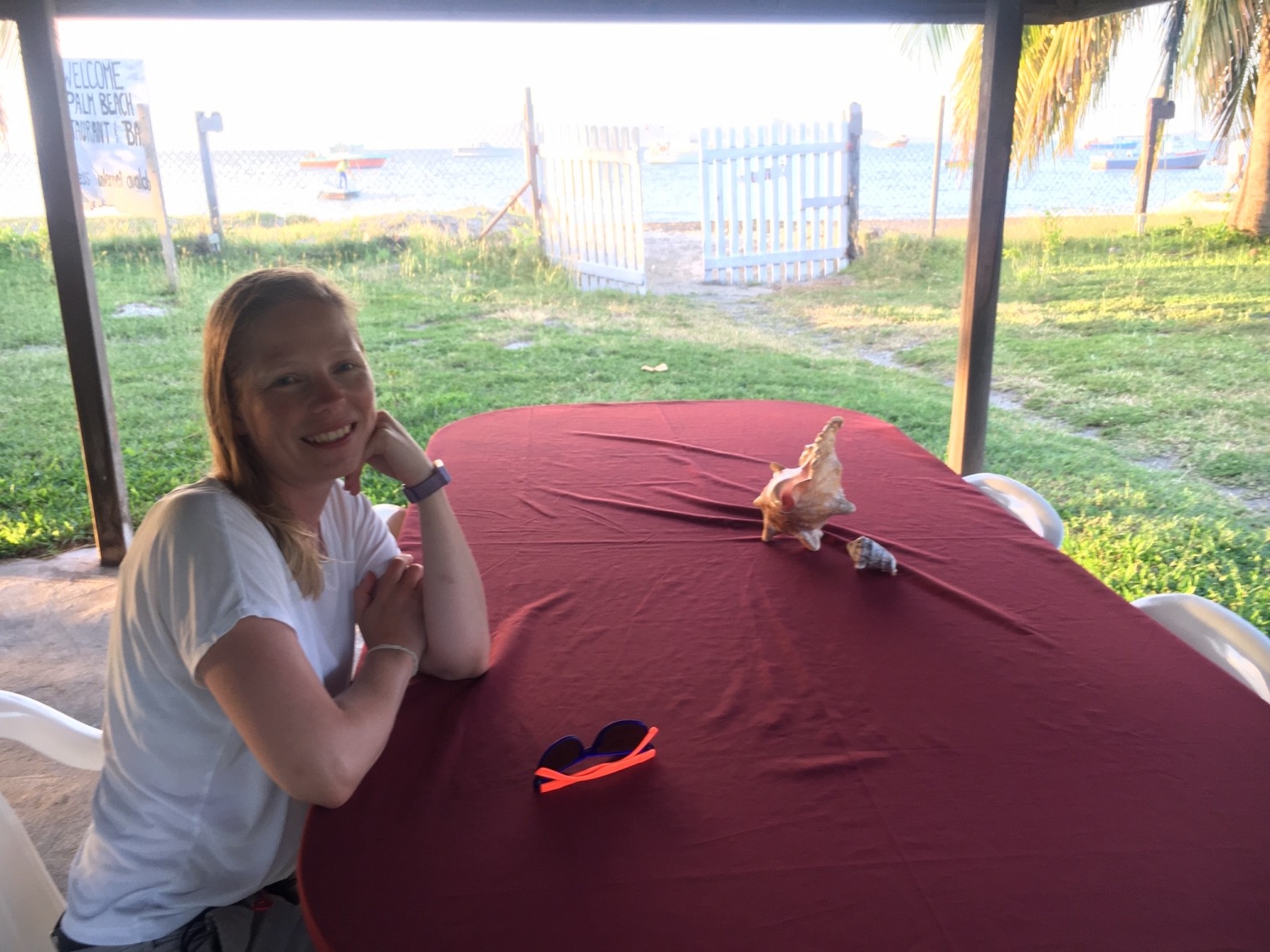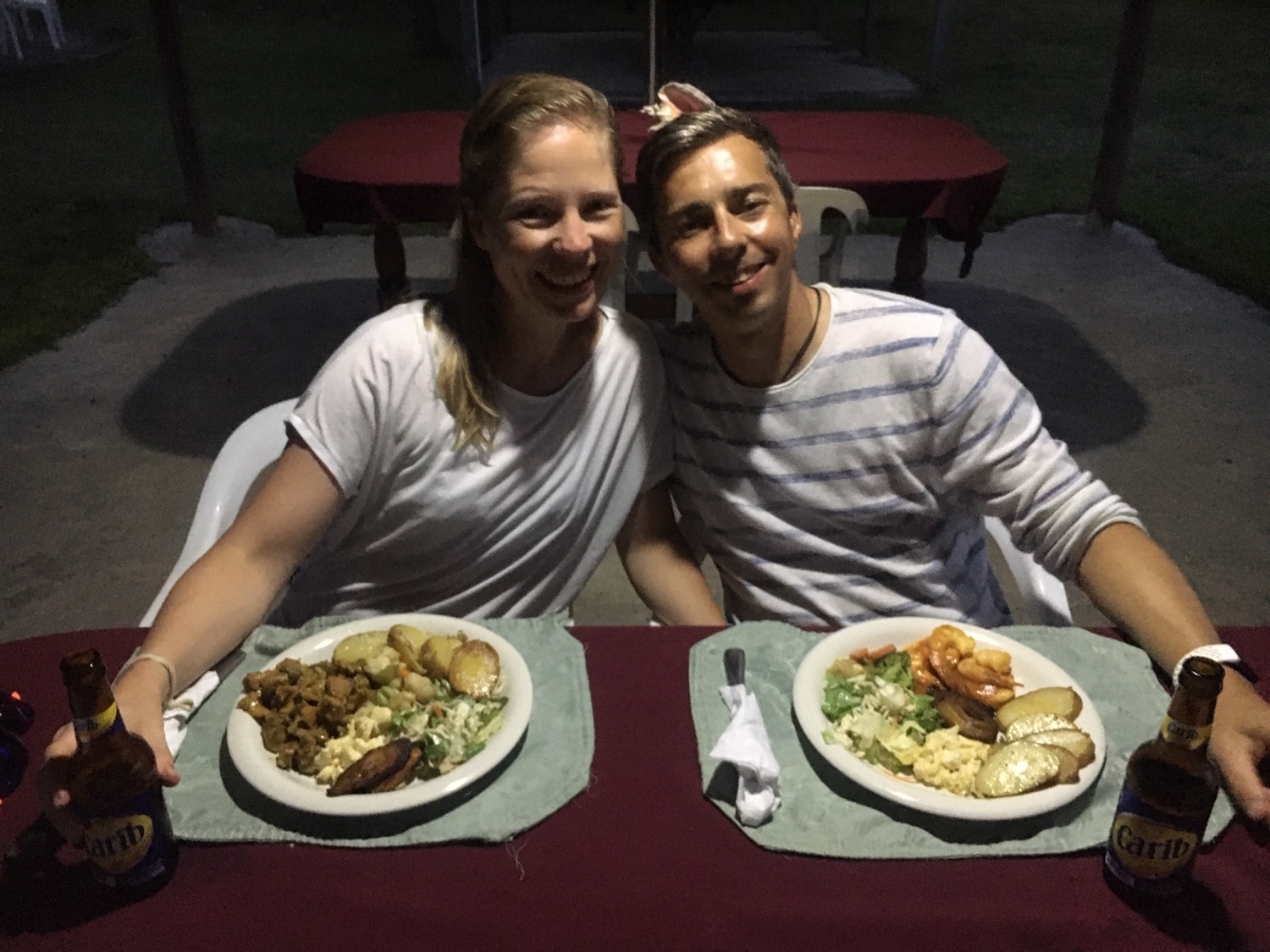 Eine Nacht in der Bucht von Petit St. Vincent mit Kaffee im Luxus Resort. Abendessen auf Petite Martinique im Palm Beach Restaurant. Leckere lokale Gerichte und Nachspeisen. Yummy!