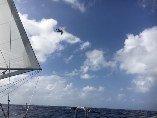 Dieser professionelle Segler hat es auf die fliegenden Fische um unser Boot abgesehen.