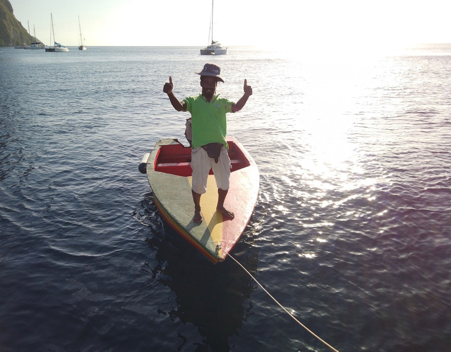 Von der Piraten Bucht ging es direkt weiter nach Soufrière. Dort haben uns Freunde unseres Skippers empfangen und am Abend hatten sie sogar unsere letzten Reste der Königsmakrele gekocht. Die Reste waren für 10 Leuten noch genug um satt zu werden. Einer der lokalen Jungs erklärte uns noch, wie man Ti Ruhm zubereitet. So hatten wir noch einen lustigen Abend mit Bier und Rum unter dem Motto „Dusma! Island time, maximum chill, you know man!“, welches wie ein Mantra heruntergebetet wurde ?