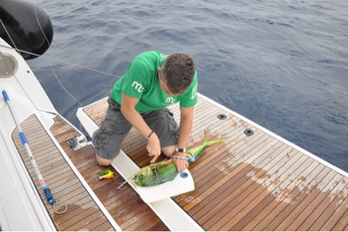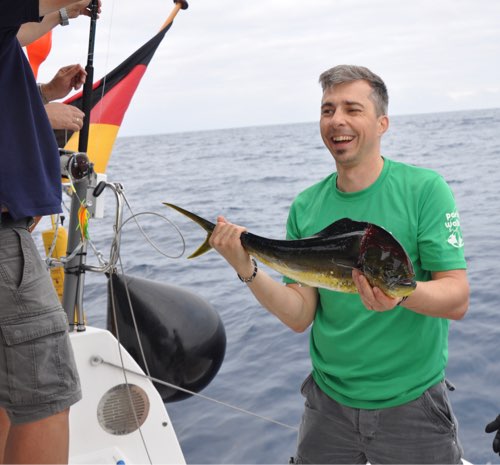 Was für ein Tag, Delphine, Baden, Mahi Mahi und Sternschnuppen. Jetzt bräuchten wir nur noch etwas Wind damit wir wieder Geschwindigkeit bekommen.