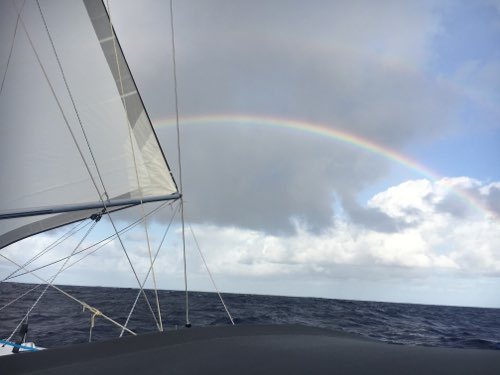 Zum Frühstück hat uns ein kompletter Regenbogen überrascht. Alle Farben waren kräftig zu erkennen und auch beide Enden. Bei 5 Km Wasertiefe werden wir den Schatz an den Enden des Regenbogens jedoch liegen lassen.