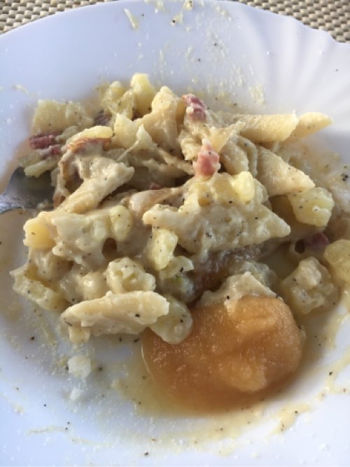 Andy hat uns heute eine schweizerische Spezialität als Abendessen zubereitet: Alpen Makkaroni (mit Speckwürfel und Zwiebeln). Man kann nur sagen Hervorragend!